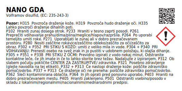 NANO GDA je dodatek k motornem olju proti obrabi, proti trenju. Zmanjša obrabo in podaljša življenjsko dobo motorja. Obnavlja kompresijo in zmanjša porabo olja ter emisije črnega in modrega dima. Zagotavlja motorju gladko in tiho delovanje in povečuje kilometražo. Primerno za bencinske in sodobne dizelske motorje, turbo in direktno vbrizgavanje.